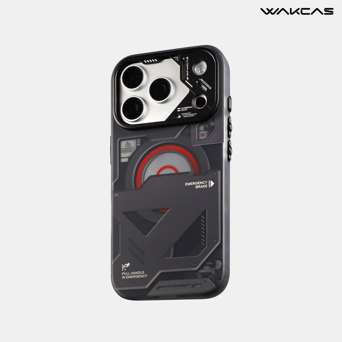 Wakcas Black Emergency Panel iPhone Case - Sleek Matte Magnetic Protective Cover