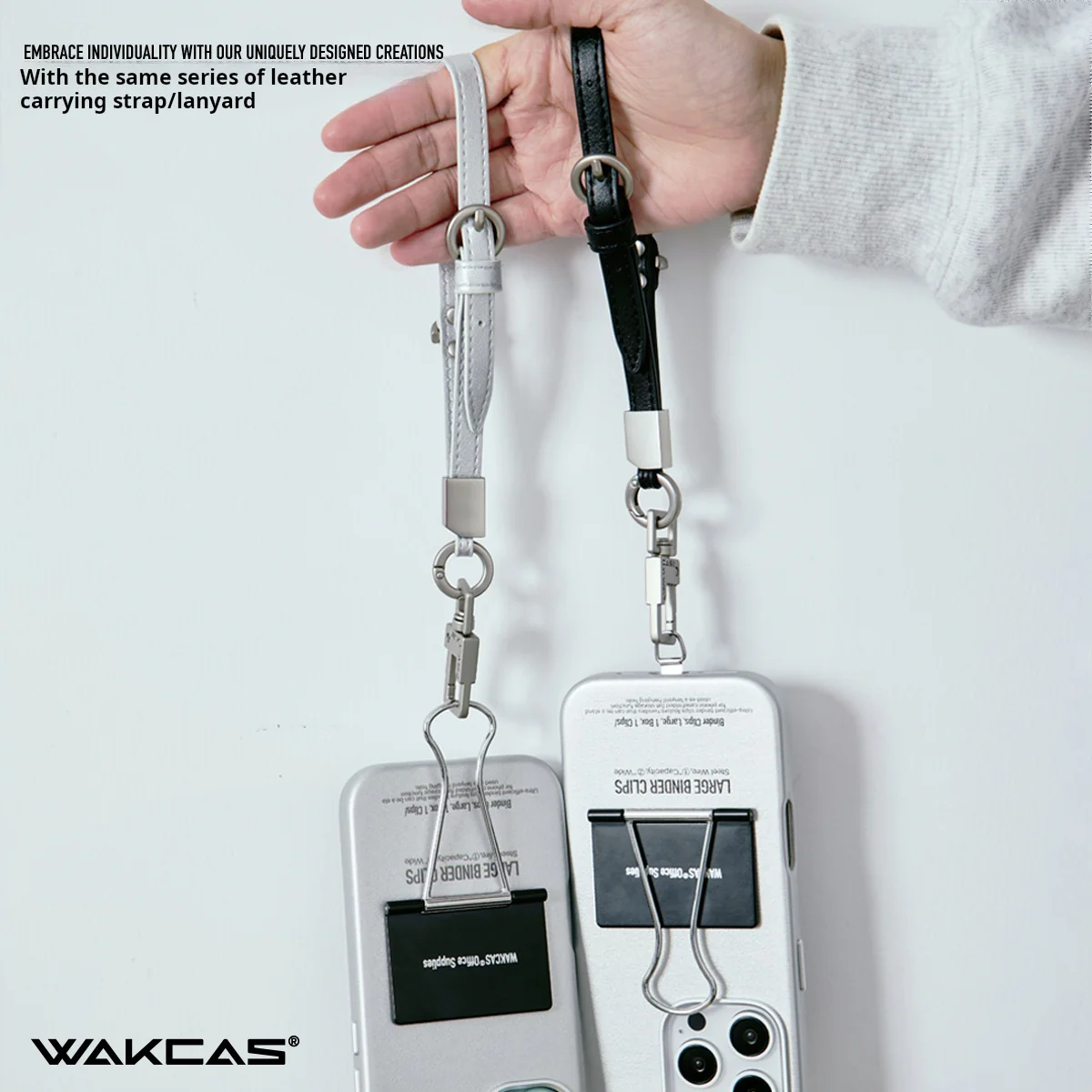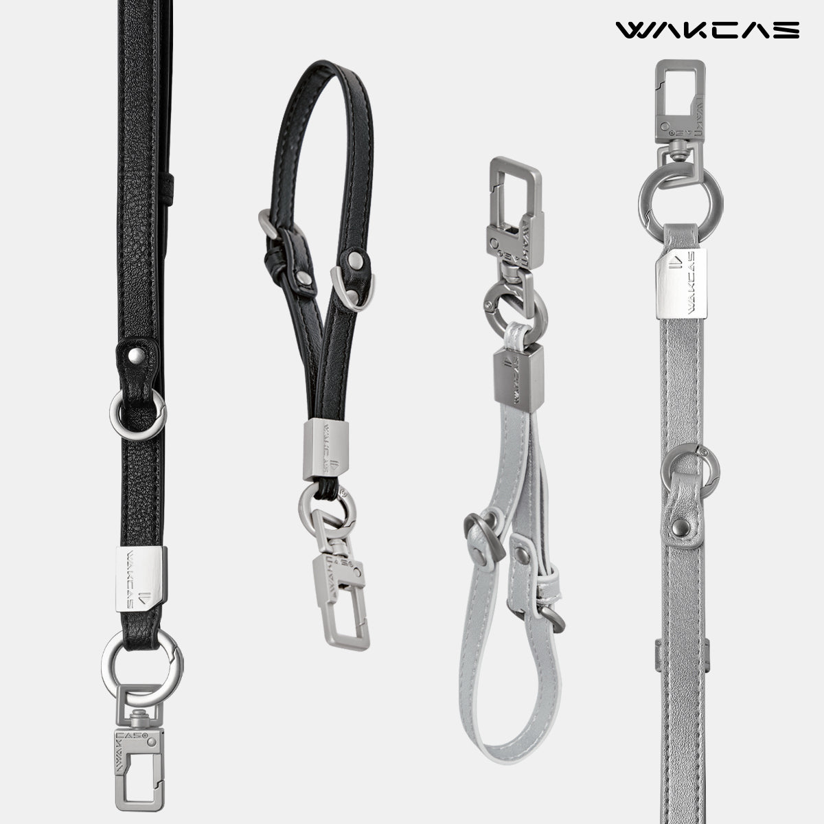 WAKCAS Adjustable Silver Leather Phone Lanyard – Minimalist Crossbody for Outdoor & Travel