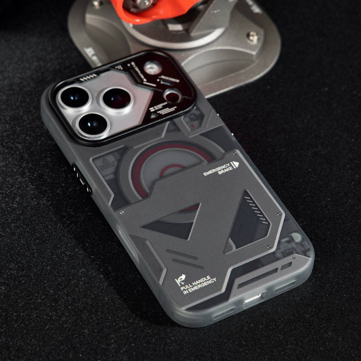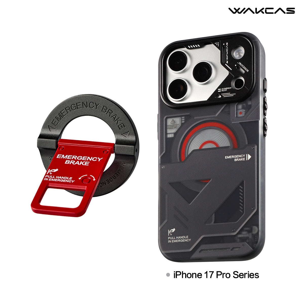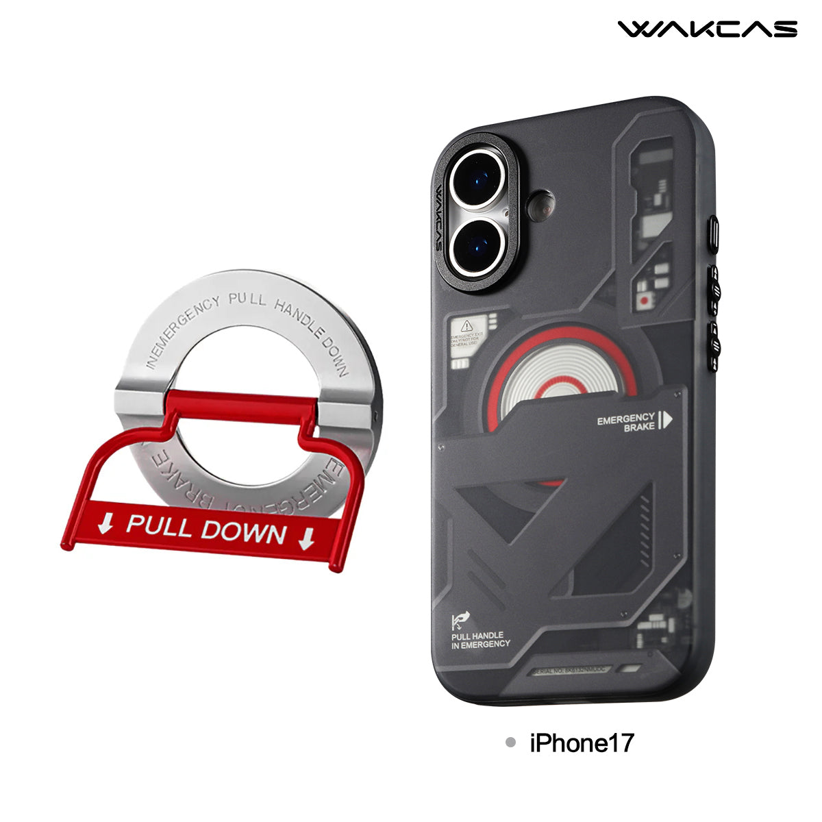 Wakcas Black Emergency Panel iPhone Case - Sleek Matte Magnetic Protective Cover