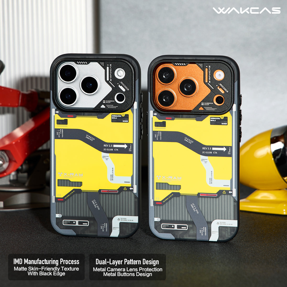 Engineered Aesthetics, Urban Ready. The WAKCAS Cyber-Mecha iPhone Case brings bold tactical design to your everyday carry. Inspired by terrain mapping and mechanical control interfaces, its distinctive black-yellow-gray graphic transforms your device into a visual statement. More than just looks, it's built with precision materials and thoughtful construction to protect without compromise.