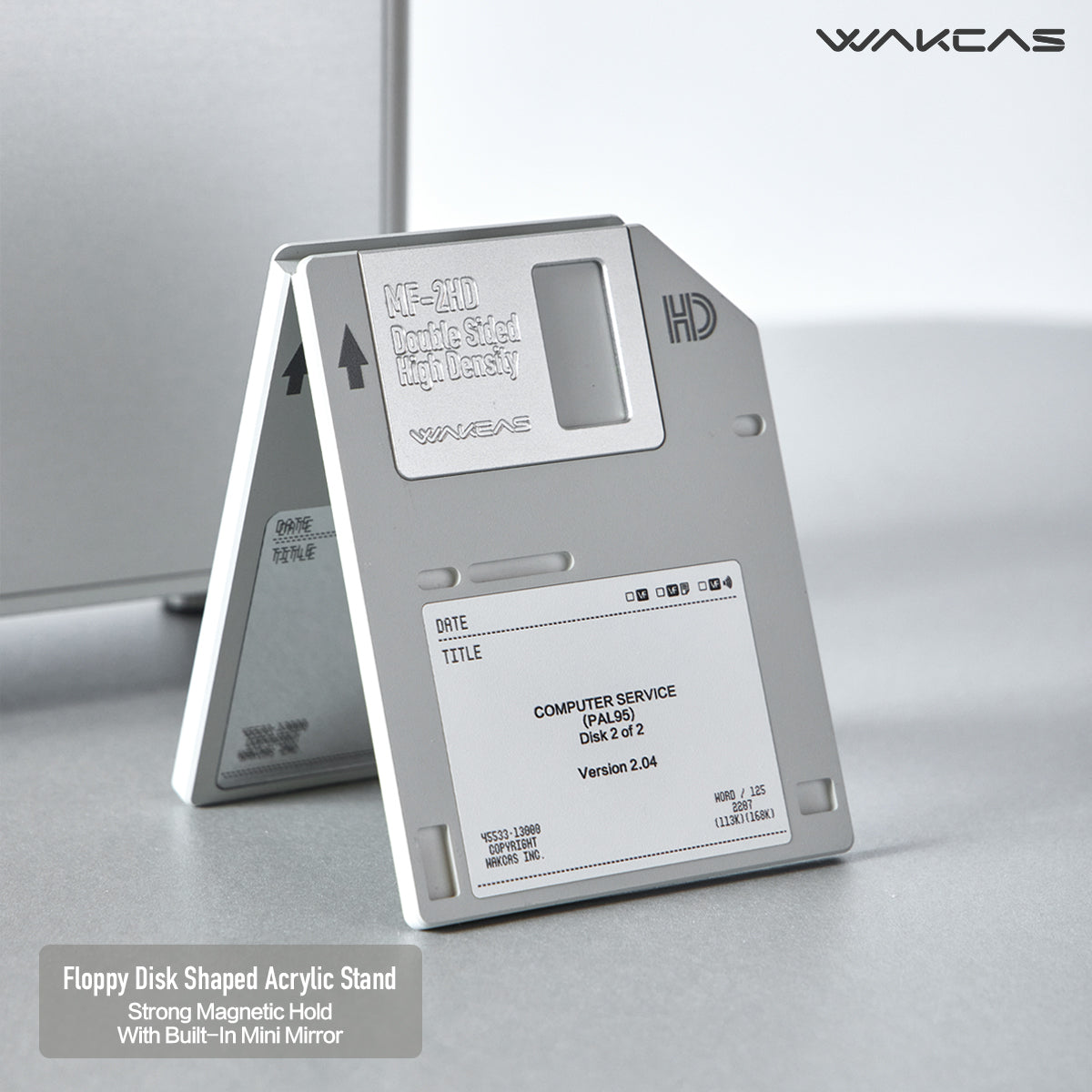 WAKCAS Retro 3.5" Floppy Disk MagSafe Stand | Vintage MF-2HD Replica for Desktop & Car